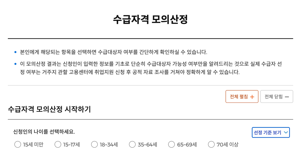 수급자격 모의산정 실시하기 >