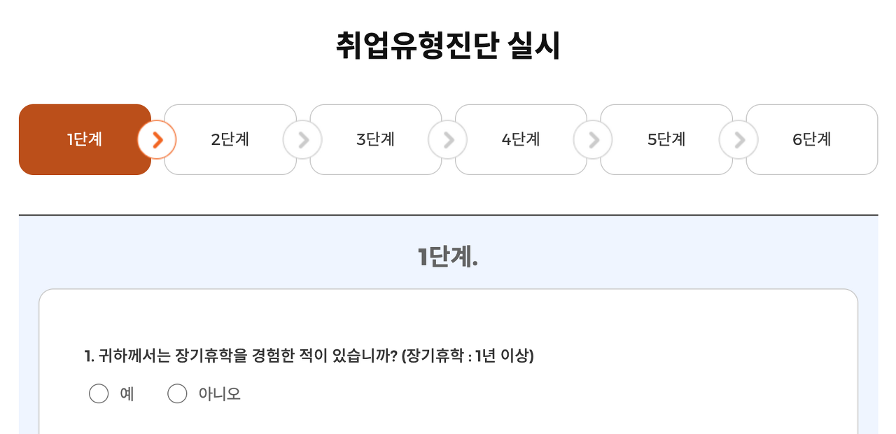 취업 유형 진단 실시하기 >