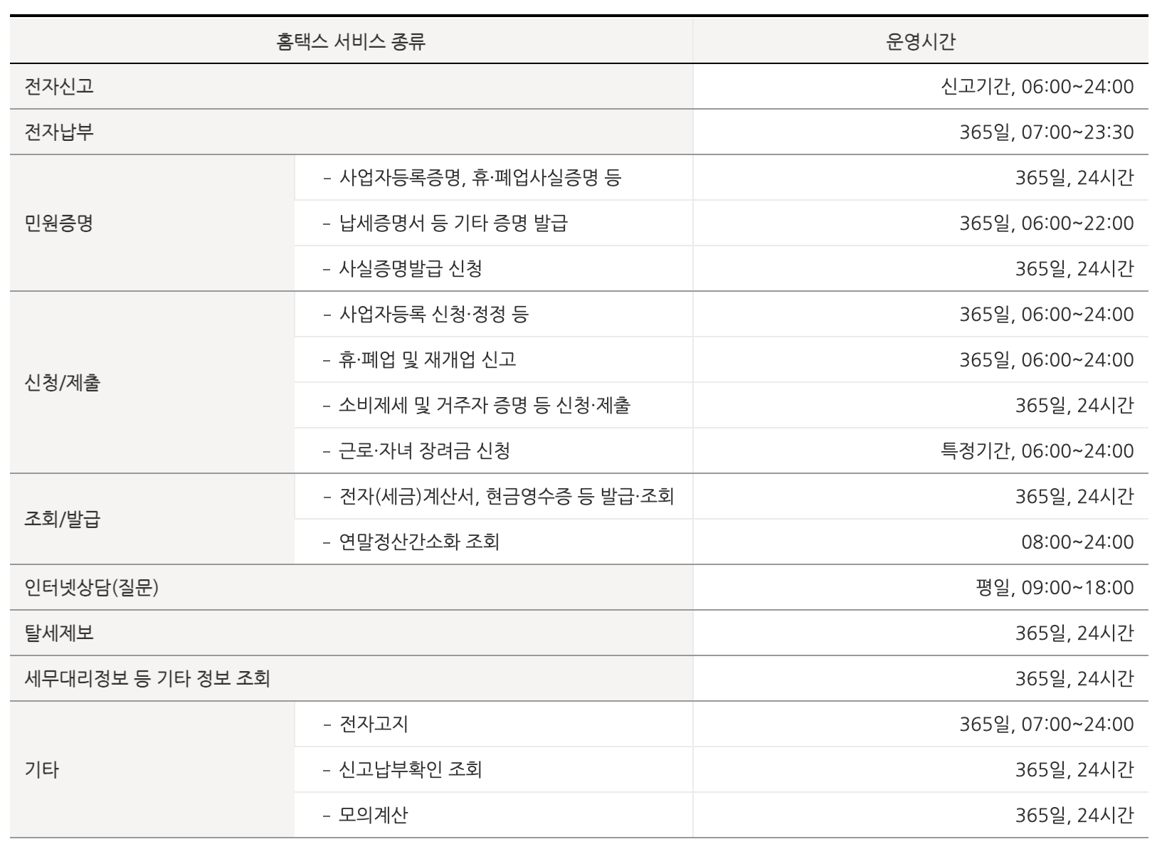 홈택스는 서비스를 이용할 때, 운영시간이 있습니다.