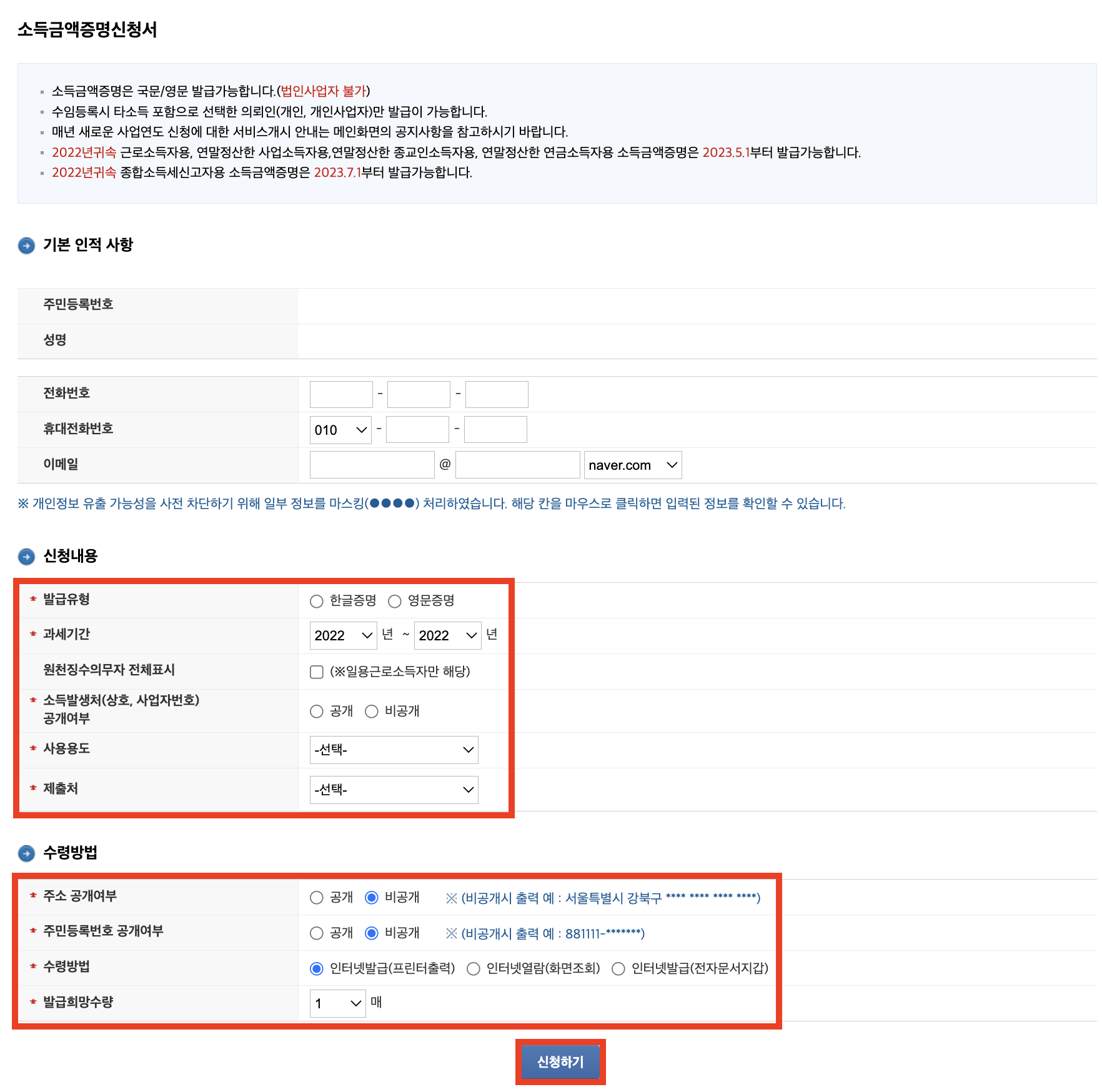(2022년도 분은 2023년도 5월에 신고 후 발급 가능)