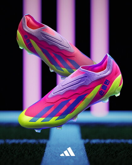 손흥민 팩은 압도적인 스피드를 상징하는 축구화 '엑스(X) 크레이지패스트'를 재해석했으며, 활력이 넘치는 서울 야경에서 영감을 받은 강렬한 형광 노랑, 분홍, 보라빛 네온컬러를 신발 전면에 적용했습니다.