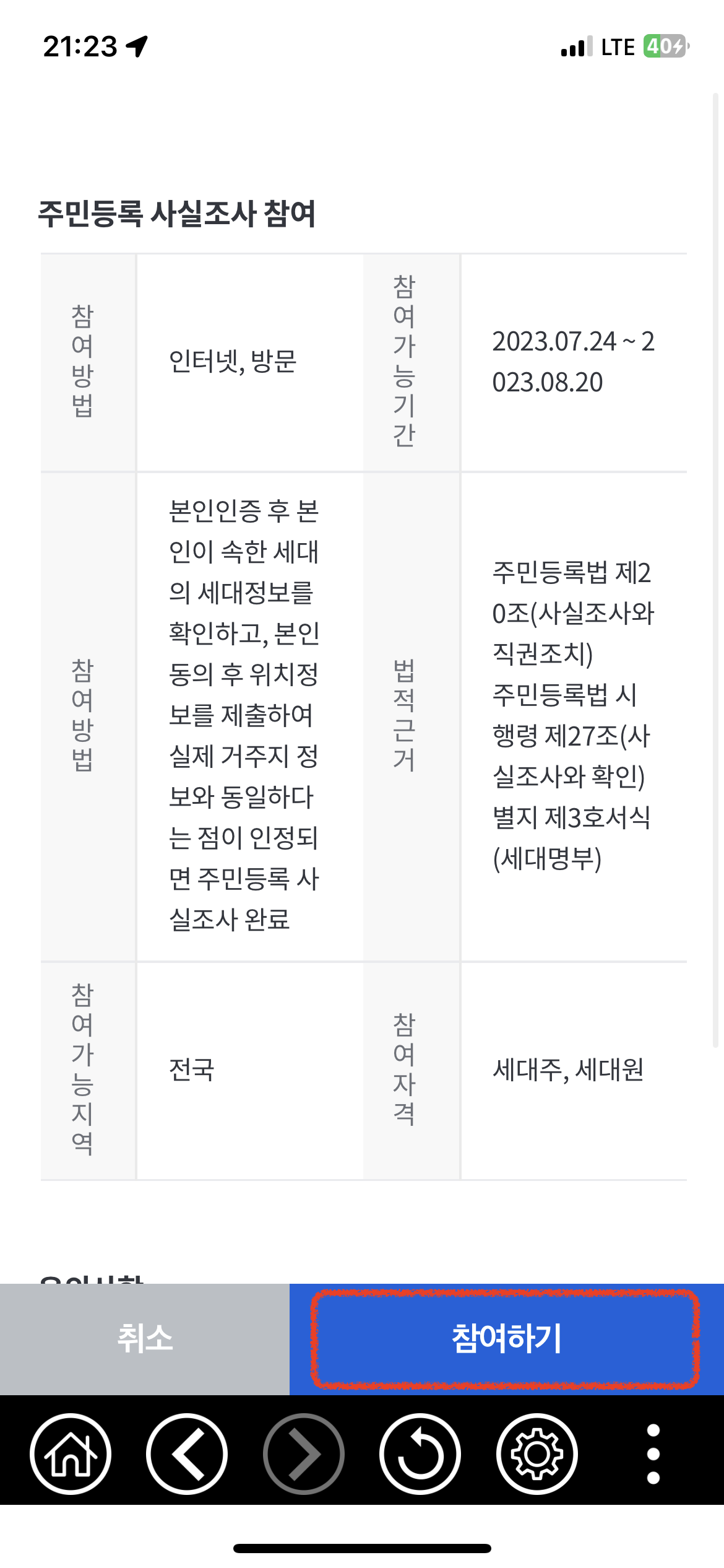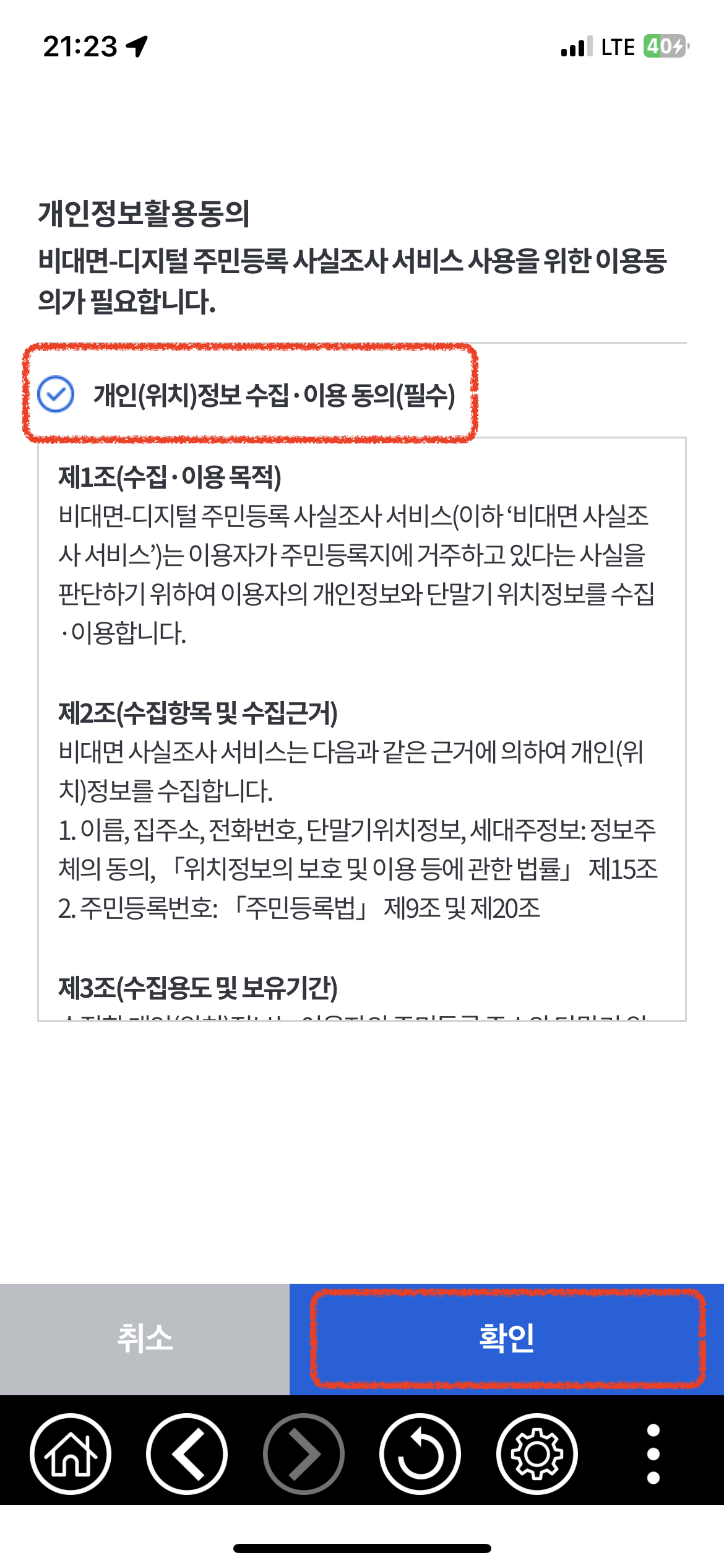 5️⃣ 개인정보활용동의 및 주민등록 사실조사 참여에 동의하고 참여합니다.